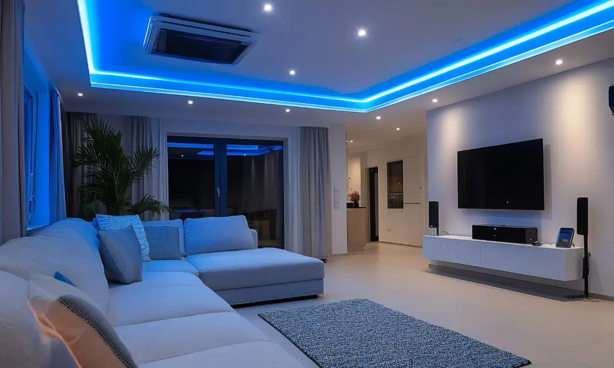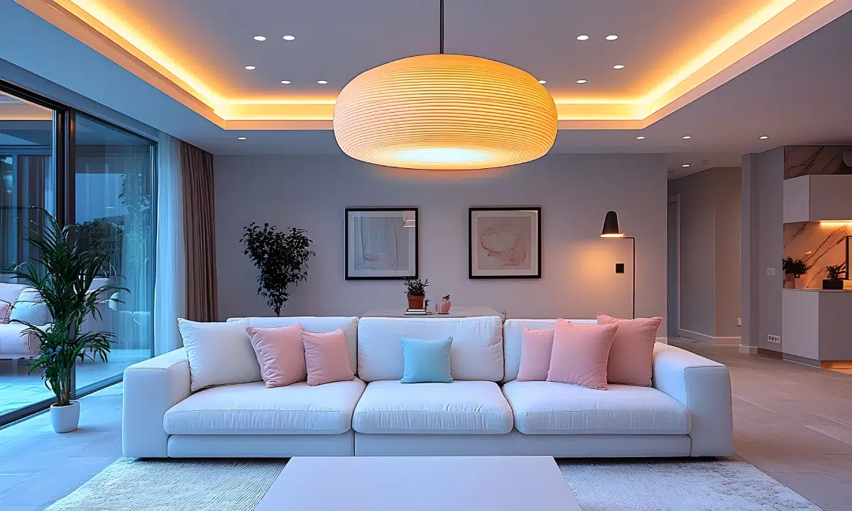Des plafonds élégants associés à un éclairage modulable pour une atmosphère chaleureuse